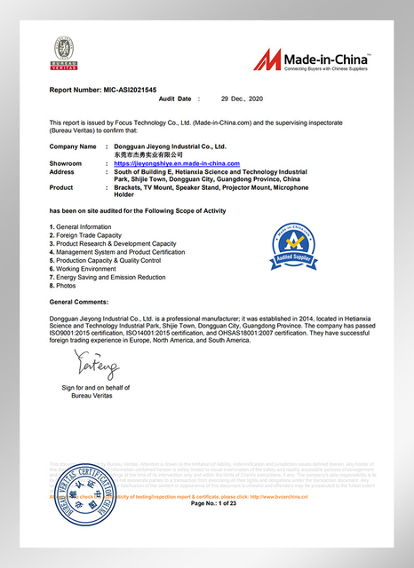우리는 TV 스텐트, 스피커 스텐트, 디스플레이 스텐트의 생산을 위해 스텐트 생산 분야에 20년 이상의 경험을 가지고 있습니다.고객에게 다양한 다차원 서비스를 제공할 수 있습니다.품질과 혁신을 추구하고 국내외 고객에게 더 나은 서비스를 제공하기 위해 노력합니다.