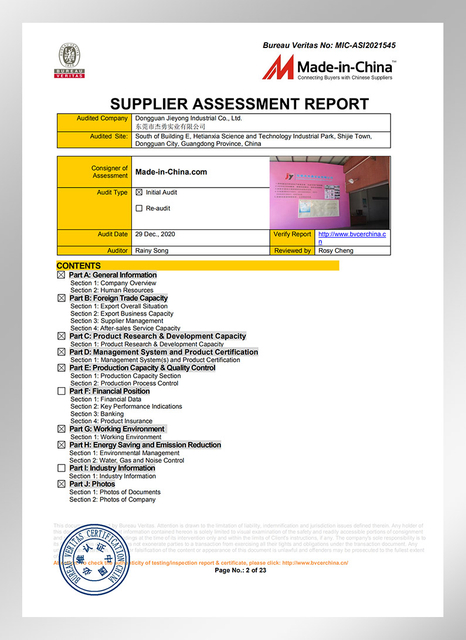 Jieyong은 '신뢰성, 투쟁 및 책임'의 기업 정신을 옹호하고 정직한 관리, 상생 및 혁신의 원칙을 고수하고 일류 지원 및 액세서리 제조 센터를 구축하기 위해 최선을 다하고 있습니다.